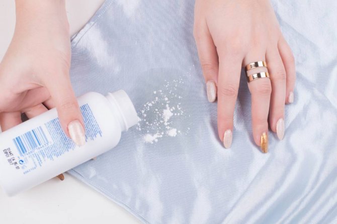 - Порошок слегка втирается в материю и удерживается в ней не меньше 20 минут.