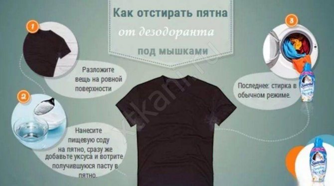 Судя по отзывам это самый лучший способ. Если у Вас в кухонном шкафу есть сода – используйте именно ее. Пастообразная смесь соды с водой творят чудеса с желтыми пятнами одежды.