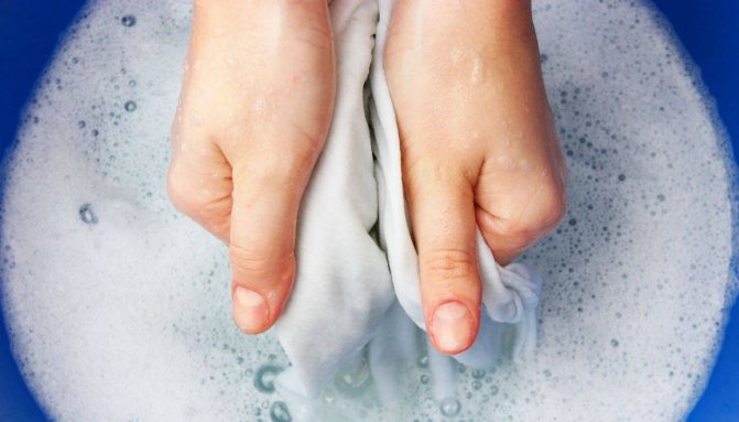 - После применения чистящих составов вещь лучше постирать вручную. Так больше вероятность того, что первозданная чистота будет возобновлена.