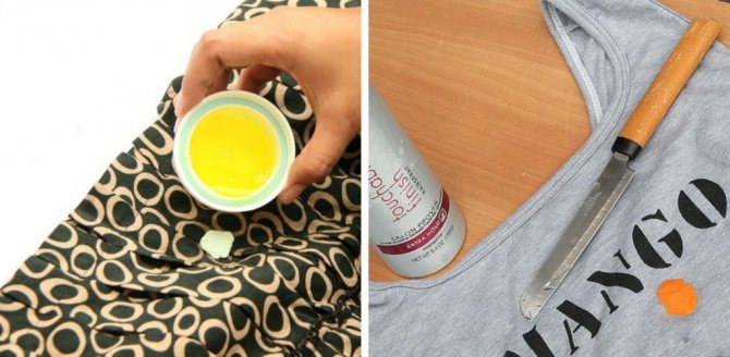 Важно! Перед выведением жирных пятен на цветной одежде следует убедиться, что она имеет качественную покраску. Для этого придется ее протестировать. Нужно будет в отдаленном месте нанести пятновыводящий состав и посмотреть, не останется ли от него на материи светлых разводов.