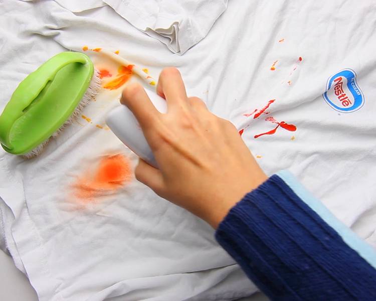 - после удаления пятна лучше постирать одежду вручную. Так удобней контролировать степень вернувшейся чистоты;