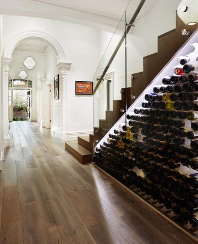 А под лестницей на цокольный этаж можно разместить коллекцию вин