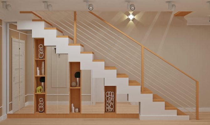 Поэтому вариантов дизайна может быть сколько угодно: для декоративных целей, для хранения или других хозяйственных нужд. В зависимости от этого и стоит определять, будет ли пространство под лестницей закрыто или послужит в качестве стеллажа для сувениров, книг или телевизора. Рис. 1.