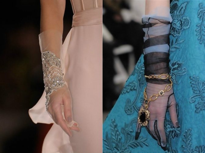 Важно! Главное преимущество митенок в их универсальности. Они замечательно смотрятся с шикарным бальным нарядом и более скромным повседневным платьем.
