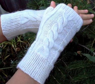 Эти митенки смотрятся, как недовязанные перчатки, очень удобные и не лишены привлекательности. Для их вязания потребуется тонкая пряжа и спицы №2. Порядок работы представляется следующим образом: