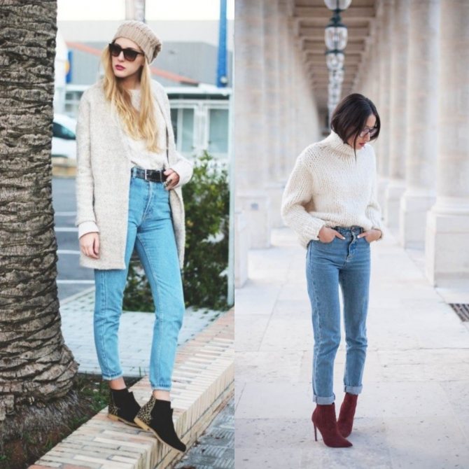 Если вы не знаете с чем сочетать джинсы бананы, тогда смело выбирайте белую базовую футболку, строгую рубашку по фигуре или рубашку «с мужского плеча», свитер с косами. И все что только есть белых оттенков. Наиболее выигрышным вариантом будет, конечно, однотонный верх. Так вы сможете наслаивать сверху еще какую-либо одежду.