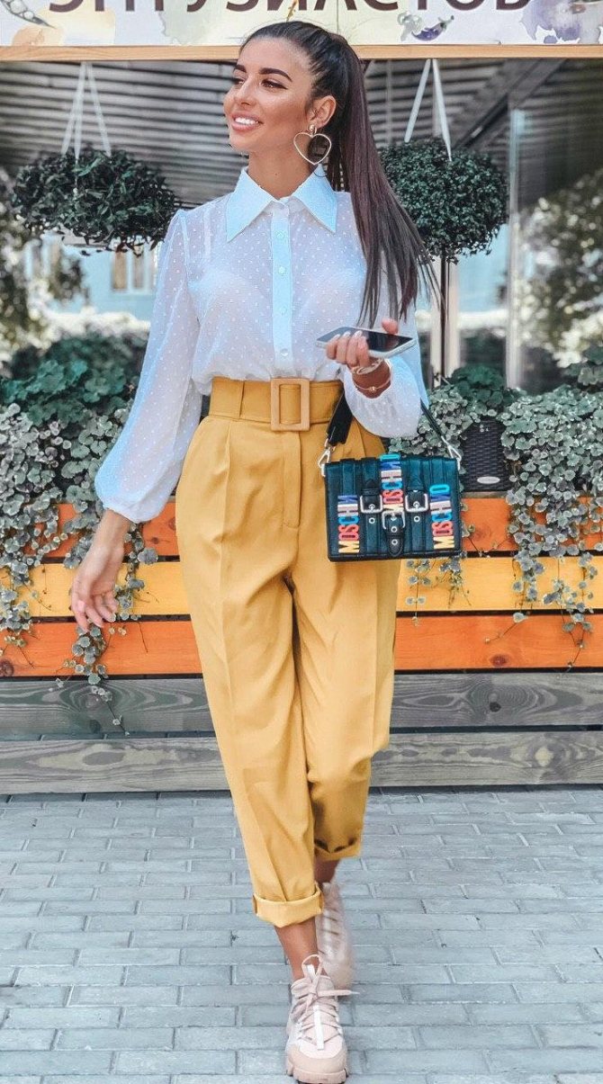 Отлично смотрится сочетание с майками и футболками, укороченными жакетами и рубашками заправленными внутрь.