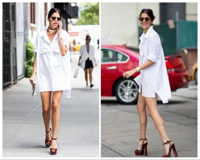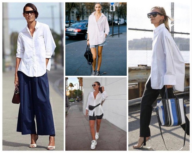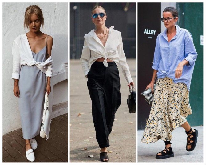 - Носим рубашку навыпуск с джинсами, с брюками, с шортами и трендовыми велосипедками (фотоколлаж 8);